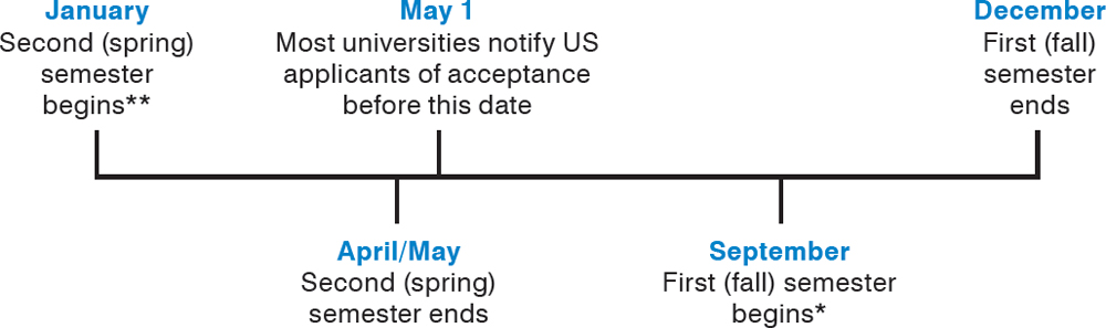 در سال تحصیلی کانادا چهار ترم تحصیلی فال، وینتر، اسرپینگ و سامر وجود دارد. بعضی از دانشگاهها ممکن است همه این ترمهای تحصیلی را و بعضی فقط تعدادی از آنها را داشته باشند. بیشتر دانشگاهها شامل سه ترم تحصیلی هستند. همانطور که میدانید شروع ترم فال سپتامپر یا اکتبر و شروع ترم وینتر هم ژانویه هست. البته در برخی دانشگاهها خصوصا آمریکا ترم وینتر وجود ندارد و شروع ترم اسپرینگ از ژانویه است. همچنین چون برای بعضی از دانشگاهها ترم اسپرینگ و سامر یکی هست، شروع ترم اسپرینگ ماه می و شروع ترم سامر جون یا جولای و یا تاریخی بین ماه می و جولای میباشد. البته ممکن است برخی دانشگاهها تعریف خودشون ارائه بدهند ولی معمولا در اکثر دانشگاهها عرف بر این روند است.